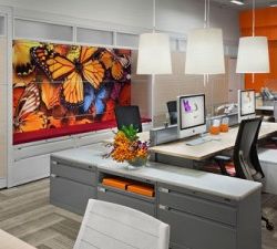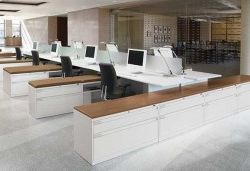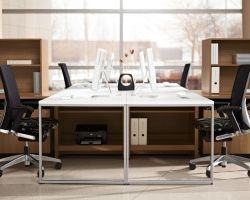 As the generations change over the years, so does the work environment and the way we work. Although cubicles are still in use today, the typical office environment is being redefined and more offices are moving towards the open plan, creating more opportunities for collaboration. The open office usually includes what is called “hoteling” or “benching” stations, rather than cubicles. It also could have a mix of both cubicles and benching, depending on the needs of the company. These benching stations might include a simple 12″ high divider, separating the back to back stations, and might also include a mobile or shared storage unit. They are typically designed for employees that are always in and out of the office and might not need an assigned station. This allows a company to maximize their growth by utilizing their space in an efficient way. In addition to having the benching stations, an open office might include phone booths for private calls, collaboration areas, and more smaller conference rooms or meeting spaces. Acoustics are also another aspect to take into consideration when designing an open office. We offer many of these necessities for an open office including benching, collaborative furniture, sit stand units, creative acoustic options, phone booths, lockers, and more! Call us to schedule an appointment and we can design the open office you’re looking for!